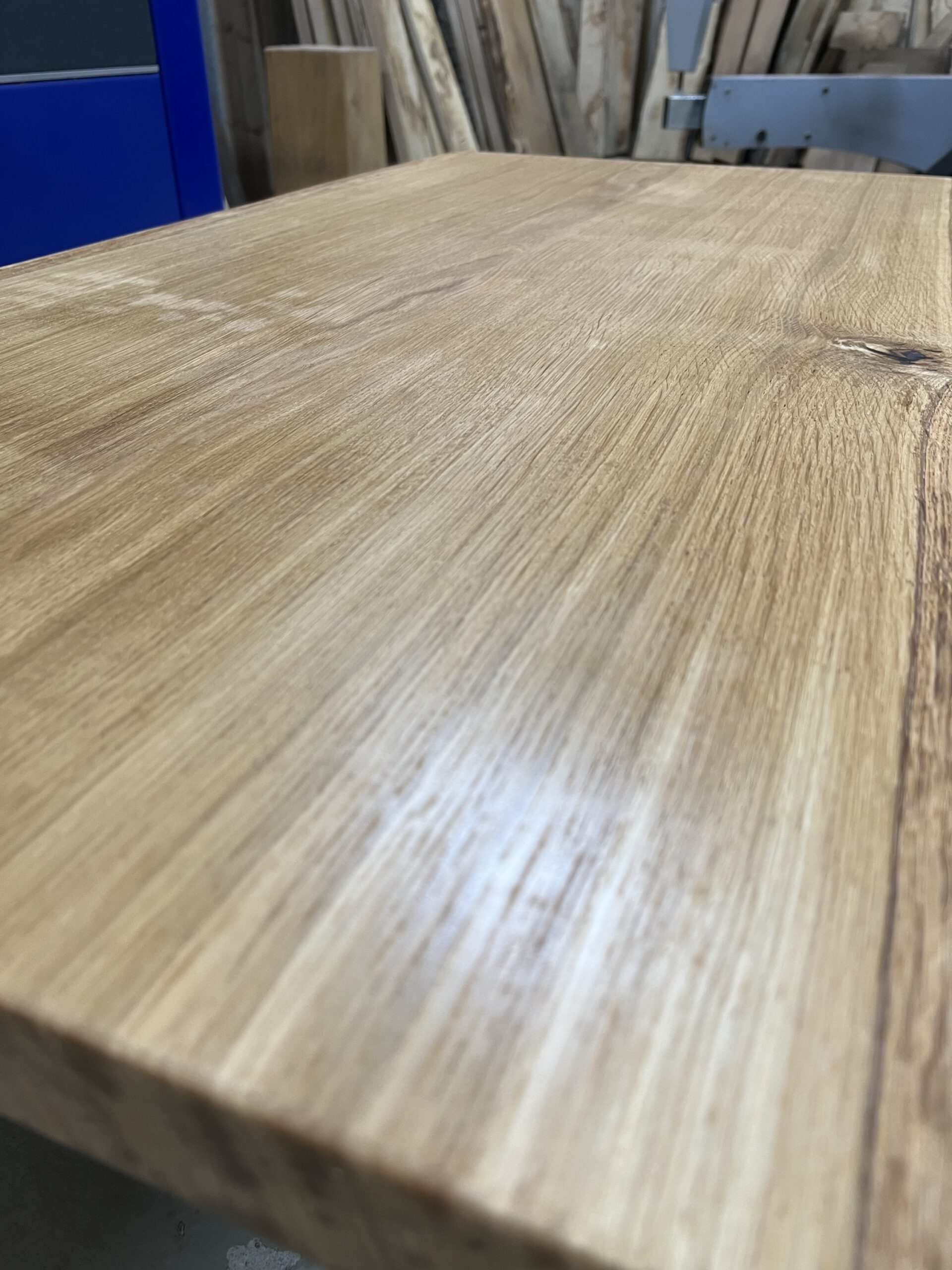 Für unsere Tische verwenden wir ausschließlich regionales Eichenholz, das wir in unserem eigenen Sägewerk einschneiden, schonend trocknen und anschließend zu hochwertigen Massivholzplatten verarbeiten. So können wir höchste Qualität gewährleisten und haben volle Transparenz über die Herkunft des Holzes.