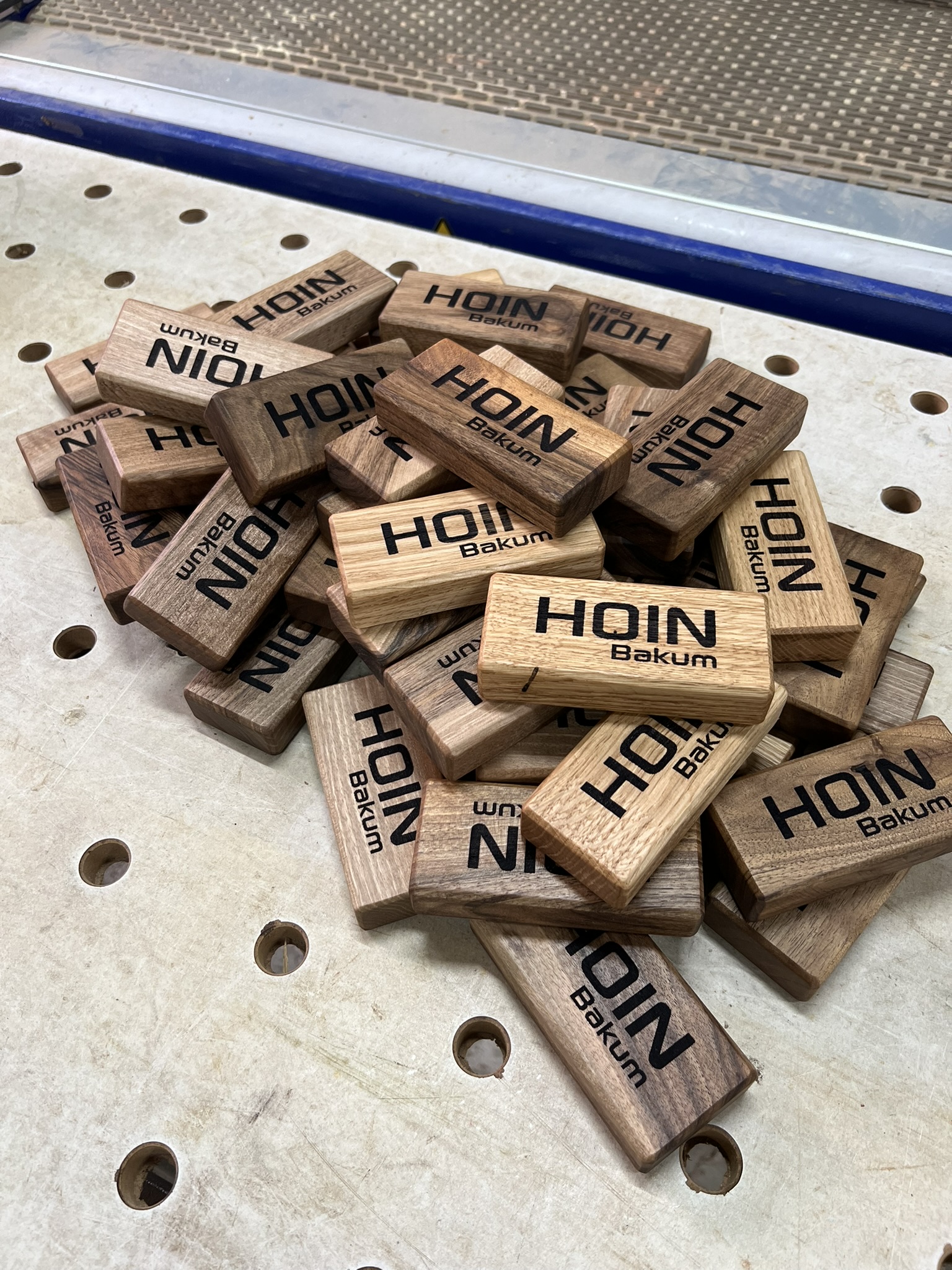 Wir fertigen die Flaschenöffner aus regionalem Massivholz. Das Holz ist geschliffen und geölt, die Kanten sind gefast – dadurch liegen sie sehr gut in der Hand. Ideal als hochwertiges Werbepräsent oder persönliches Geschenk.